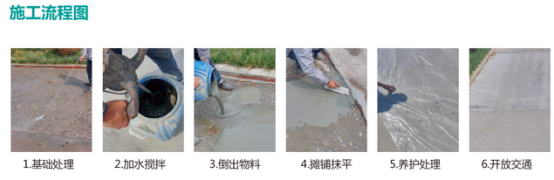 主要用于道路、厂区水泥路面起皮、起砂、冻融、露石子、蜂窝、麻面等的处理;各类地坪施工工程的基础修补与处理。此外,该产品还广泛应用于桥梁、码头、水利、大型市政工程等混凝土的快速修补。